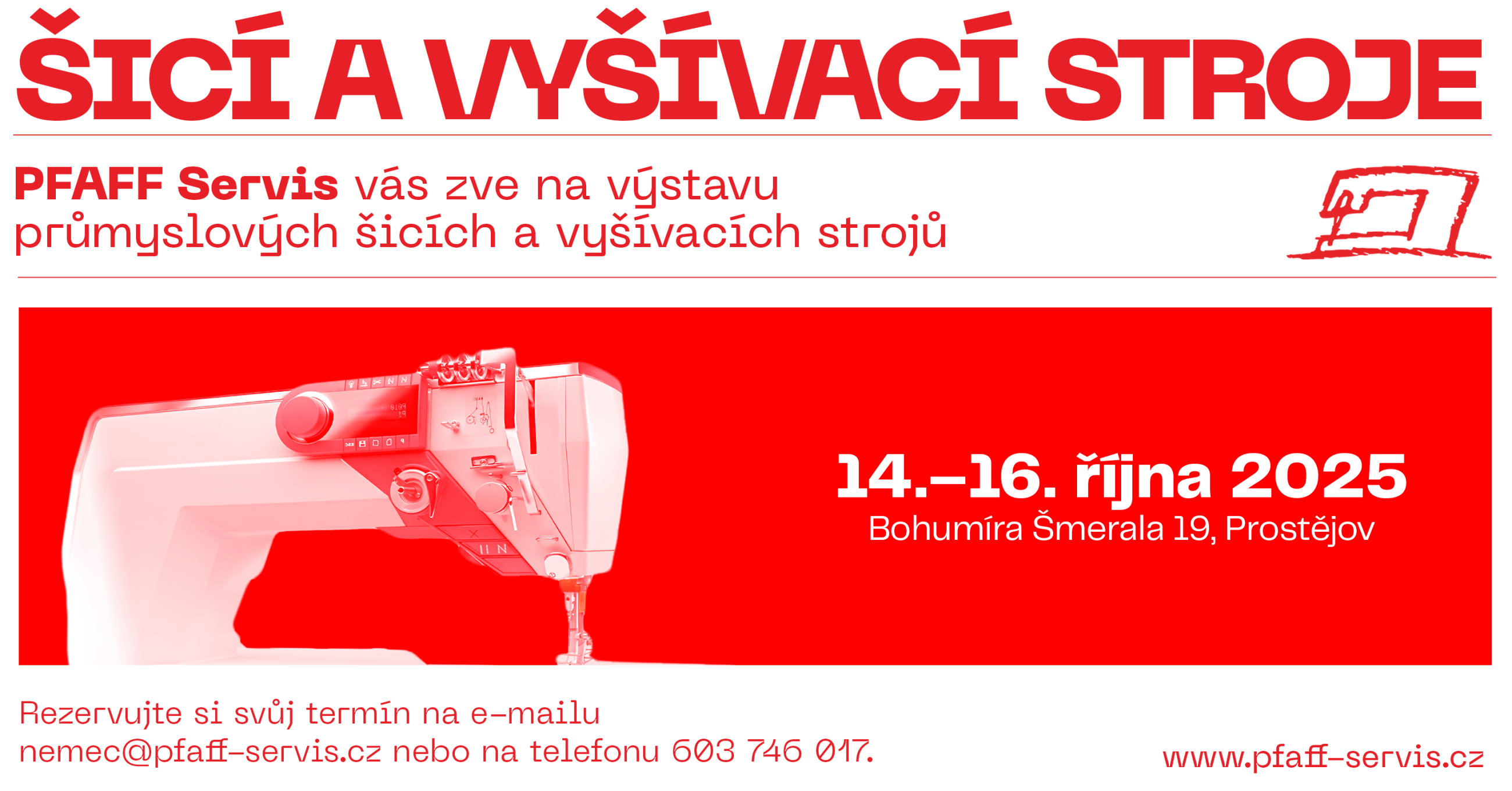 Srdečně vás zveme na výstavu průmyslových vyšívacích strojů ZSK, která se uskuteční ve dnech 14.–16. října 2025 na adrese Bohumíra Šmerala 19, Prostějov.